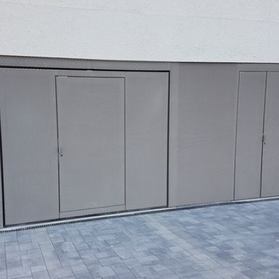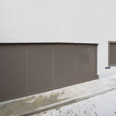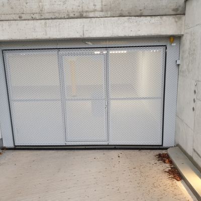 Streckmetalle in Aluminium verleihen dem Gebäude eine individuelle Note. Insbesondere bei Toren in Einstellhallen mit natürlicher Belüftung eignet sich diese Beplankungsart bestens. Die Struktur des Streckmetall weisst eine hohe Beständigkeit hinsichtlich Dellen auf.